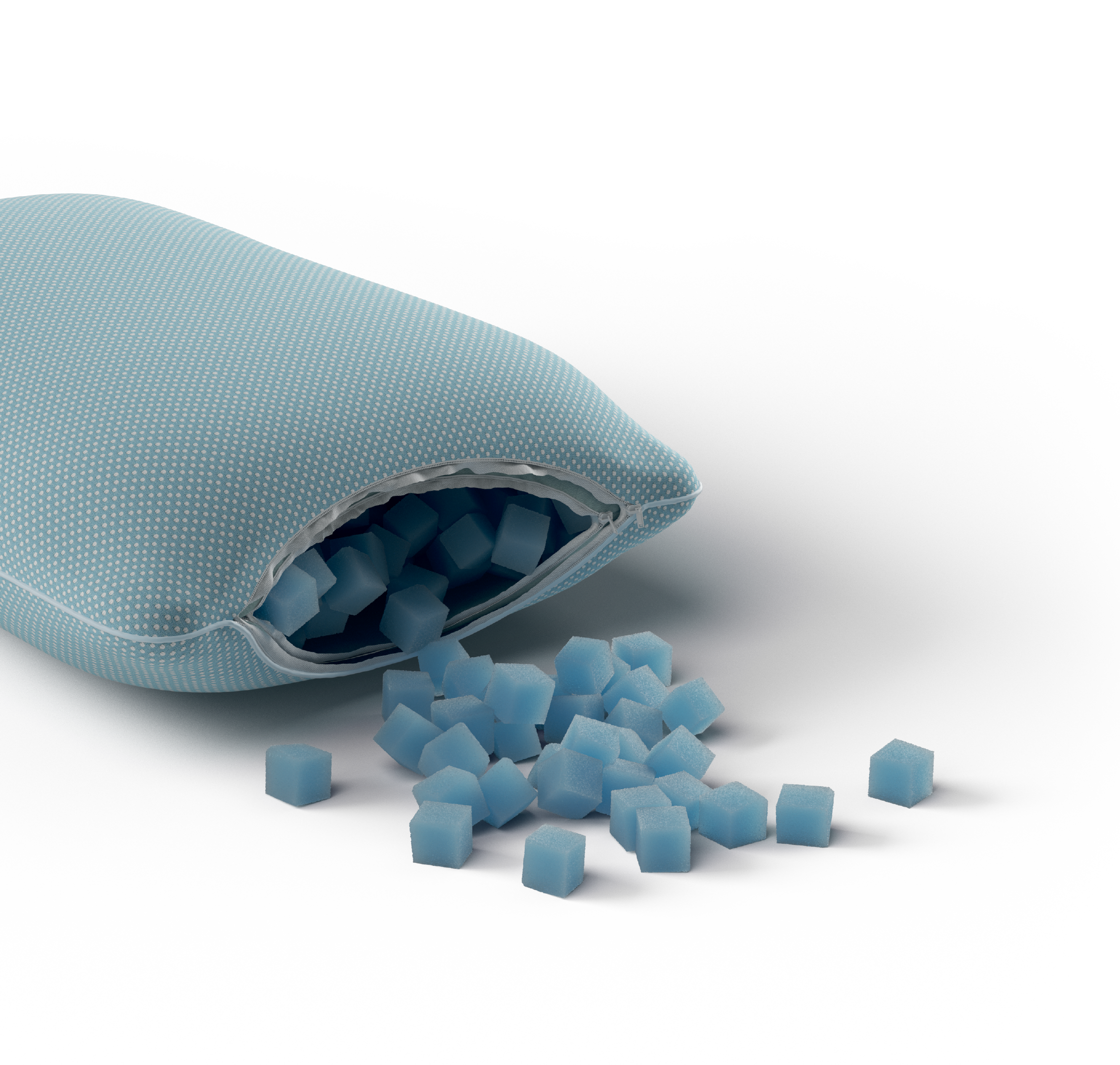 Het Snow Cube-kussen (70x50 cm) is gevuld met 600 gram visco-elastische schuimblokjes met gelpartikels. Je past de hoogte en stevigheid eenvoudig aan door blokjes toe te voegen of weg te nemen.